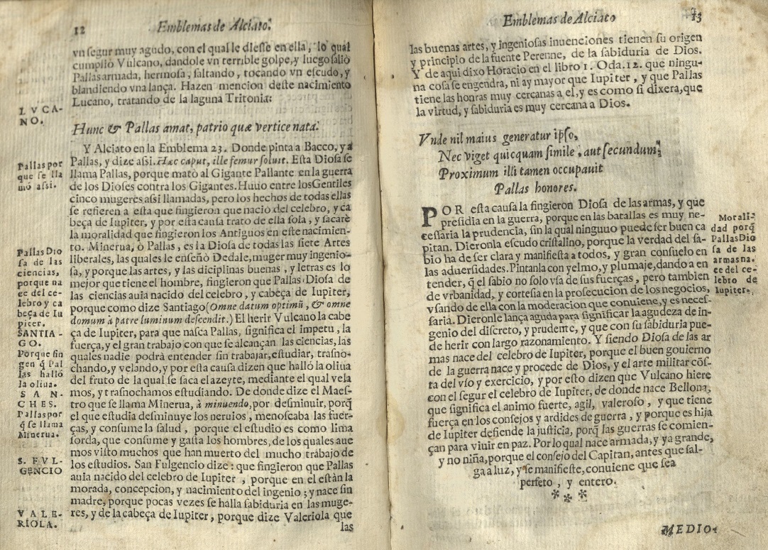 La obra del humanista milanés Alciato (Emblematum libellus, 1531) fue acogida rápidamente en el mundo hispano. Ya en 1549 circulaba una traducción de los emblemas en rima española y, cambiando de centuria, aparecerán acompañados del comento del catedrático Diego López.