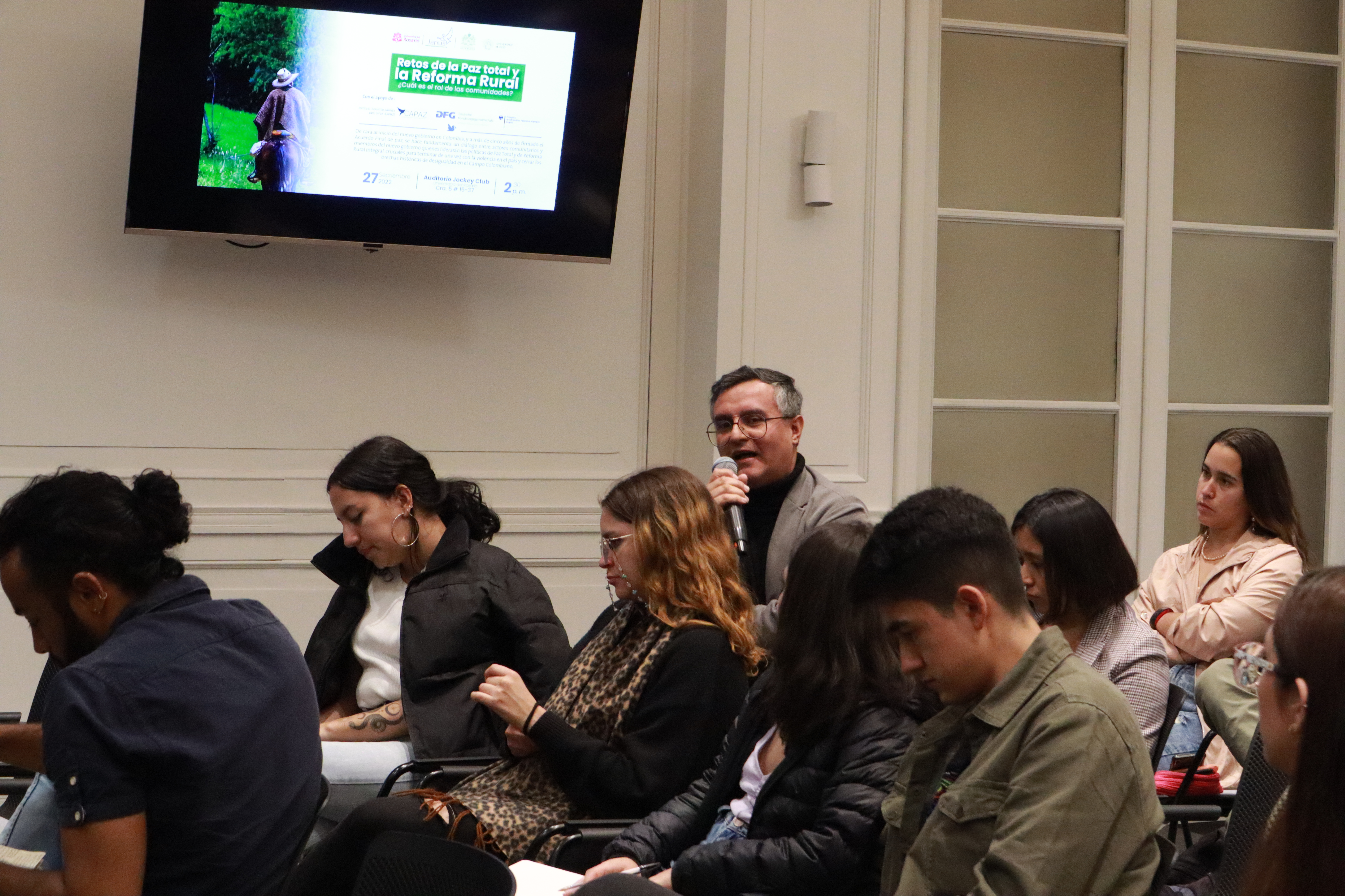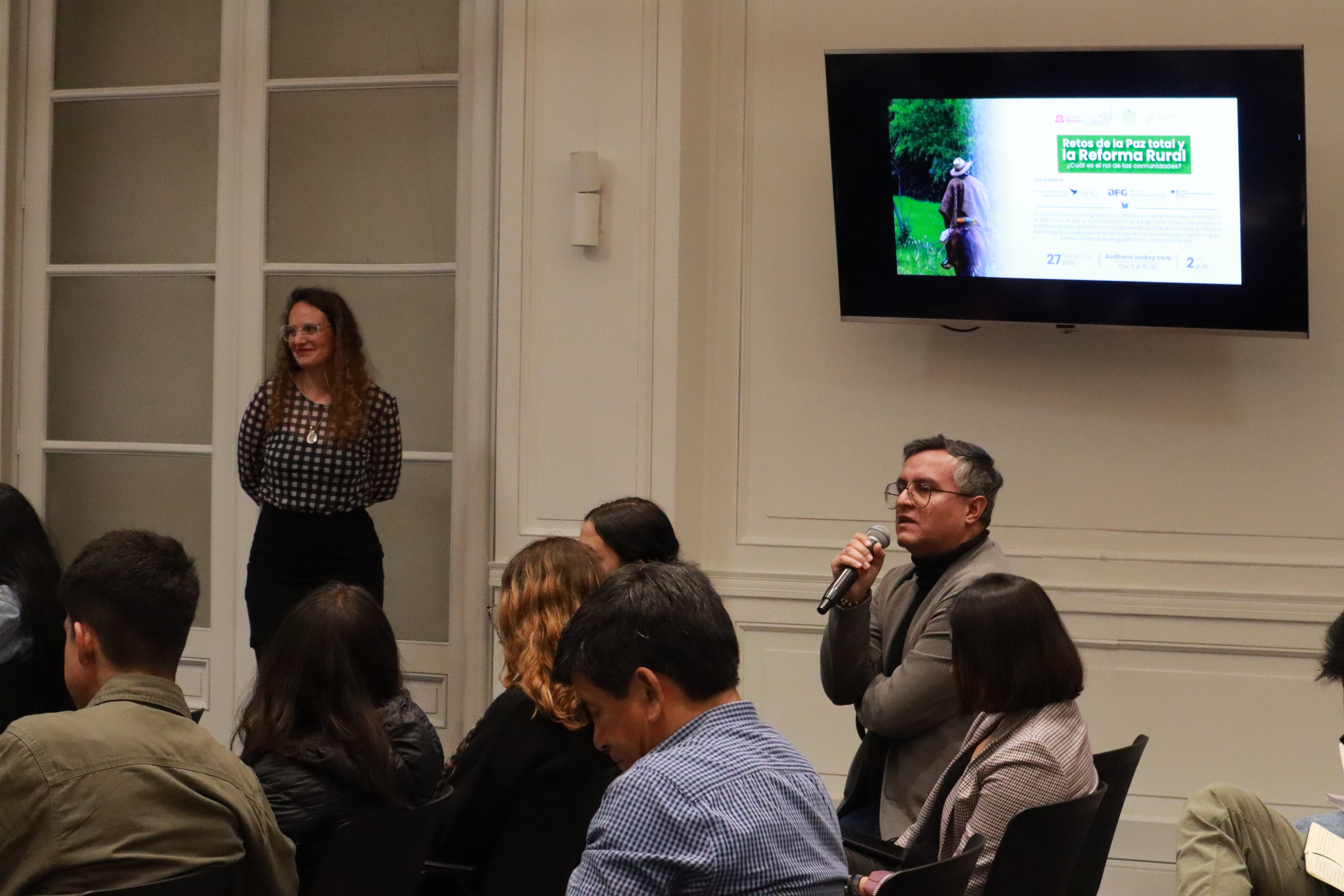 Maestría en Conflicto, Memoria y Paz de la Universidad del Rosario, moderó el panel donde participaron Betsy Ruíz, lideresa del Espacio Territorial de Reincorporación de Aguabonita, La Motañita Caquetá; Paola Bolaños, lideresa Zona de Reserva Campesina de Cabrera, Sumapaz; Stefan Peters, director de Capaz; Gabriel Jhon Tobón, profesor de la Facultad de Estudios Ambientales y Rurales de la Pontificia Universidad Javeriana; y Jairo Baquero, profesor de la Escuela de Ciencias Humanas de la Universidad del Rosario.